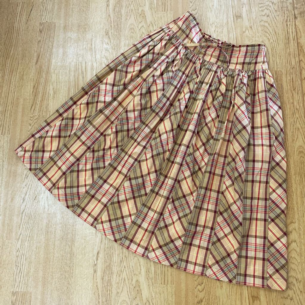 > WONDERFULWORLD KANEKOISAO * ワンダフルワールド カネコイサオチェック柄 ふんわりロングスカート 切り替え ウエストゴム ブラウン系