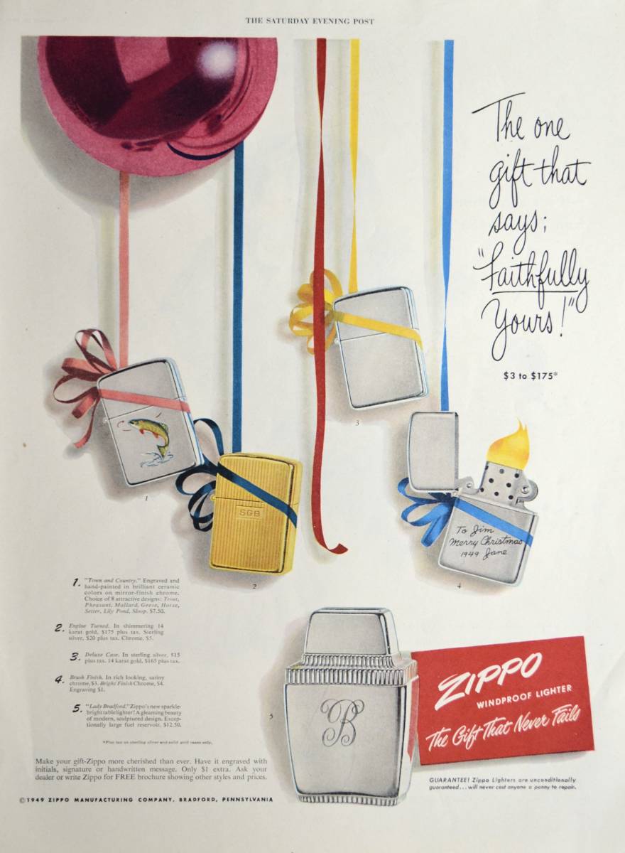 - 稀少!1949年Zippo広告/ジッポー/ライター/煙草/シガー/G