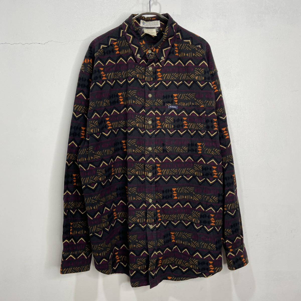 - 送料無料☆90s☆Columbia☆総柄フランネルシャツ☆ネイティブ柄☆ブラック☆L☆