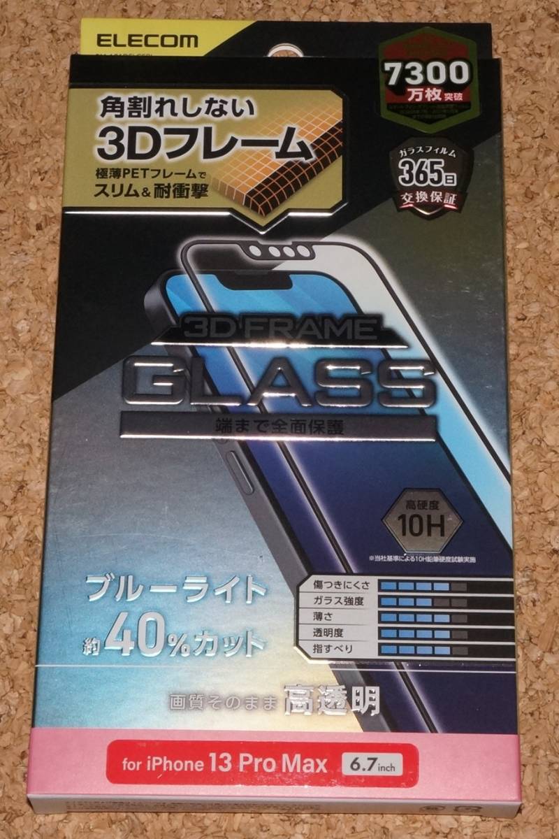 > ★新品★ELECOM iPhone13Pro Max ガラスフィルム 3D PETフレーム付 ブルーライトカット 高透明