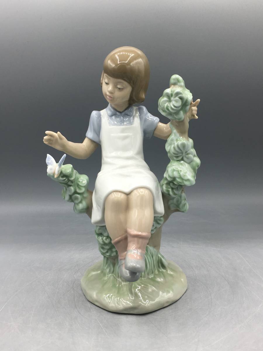 - リヤドロ ナオ 女の子 蝶 置物 フィギュリン 陶器 陶器人形
