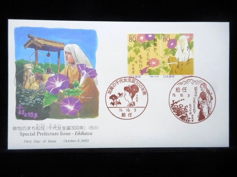 - ふるさと切手 俳句のまち松任 千代女生誕300年 石川県 平成15年 2003年 初日カバー FDC 日本切手 L-318