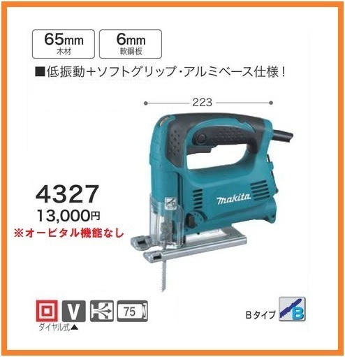 > マキタ 100V ジグソー 4327 [オービタル機能なし]■安心のマキタ純正/新品/未使用■