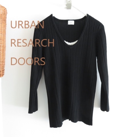 - 送料込 匿名配送 URBAN RESARCH DOORS アーバンリサーチ ドアーズ リブ Vネック コットンニット 黒
