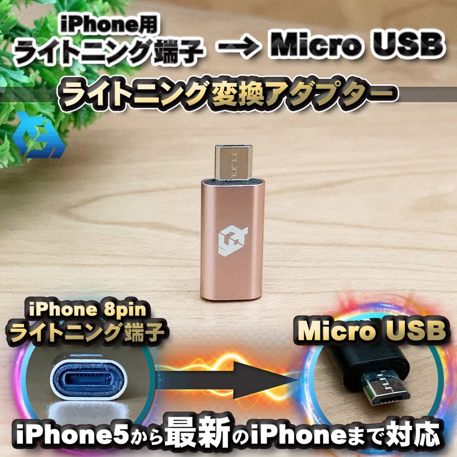 - iPhone用 ライトニング ケーブル→ マイクロUSB 端子 に 変換アダプター x1個 【ピンク】