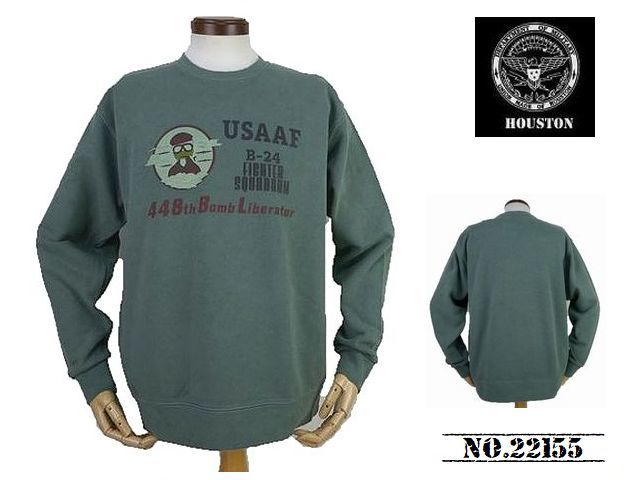 - 【送料無料 35%OFF】HOUSTON ヒューストン ピグメント加工 スウェット クルーネック 「USAAF」 NO.22155 OLIVE DRAB_Lサイズ