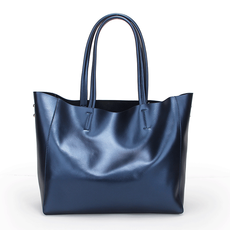 - 高級本革 レディーストートバッグ牛革 2WAYカジュアル ハンドバッグ ビジネス ハンド 大容量 レザートートバッグ ポーチ付き C73 ブルー
