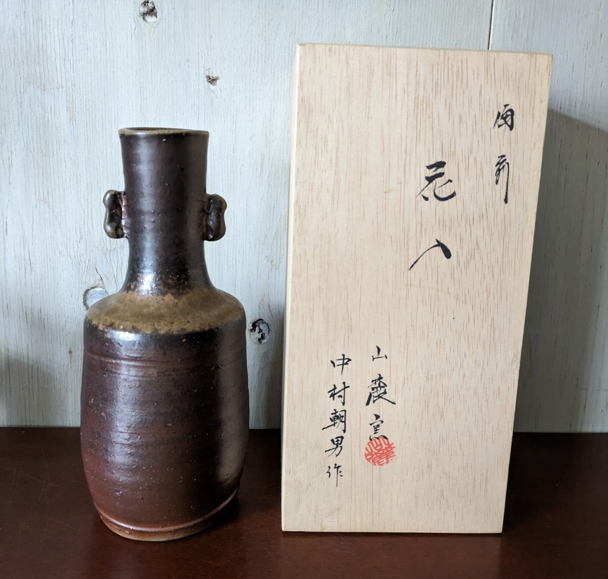 - 備前焼 山麓窯 中村朝男 花入 共箱 花器 花瓶
