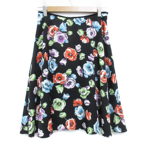 - エル ELLE フレアスカート ひざ丈 花柄 マルチカラー 40 黒 白 ブラック ホワイト /FF44 レディース