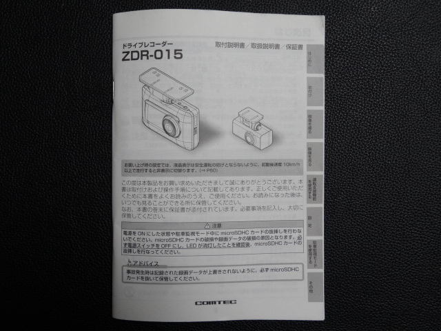 - TS9000 ☆ コムテック 取付説明書/取扱説明書 ☆ ドライブレコーダー ZDR-015【送料¥230~】