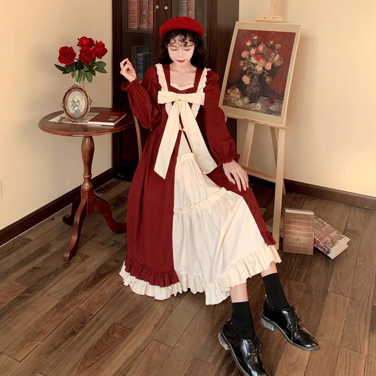 - レディース 長袖 毎日 ロリータ sweet系 ロングスカート ワンピース 気質 4XL