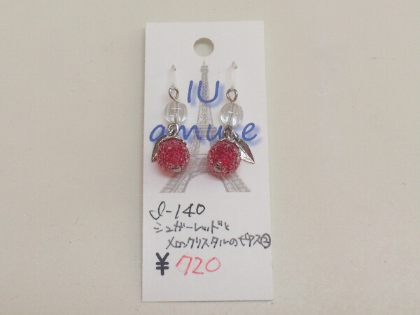 - ハンドメイド★シュガーレッドとメロンクリスタルのピアス② (525)値下げ