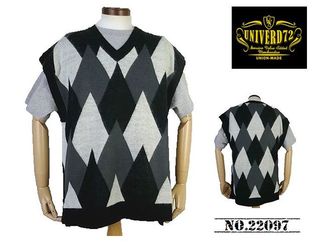 > 【送料無料 69%OFF】UNIVERD72 ユニバード72 BRUSHING アーガイル柄 表起毛 ベスト NO.22097SPL BLACK_Lサイズ