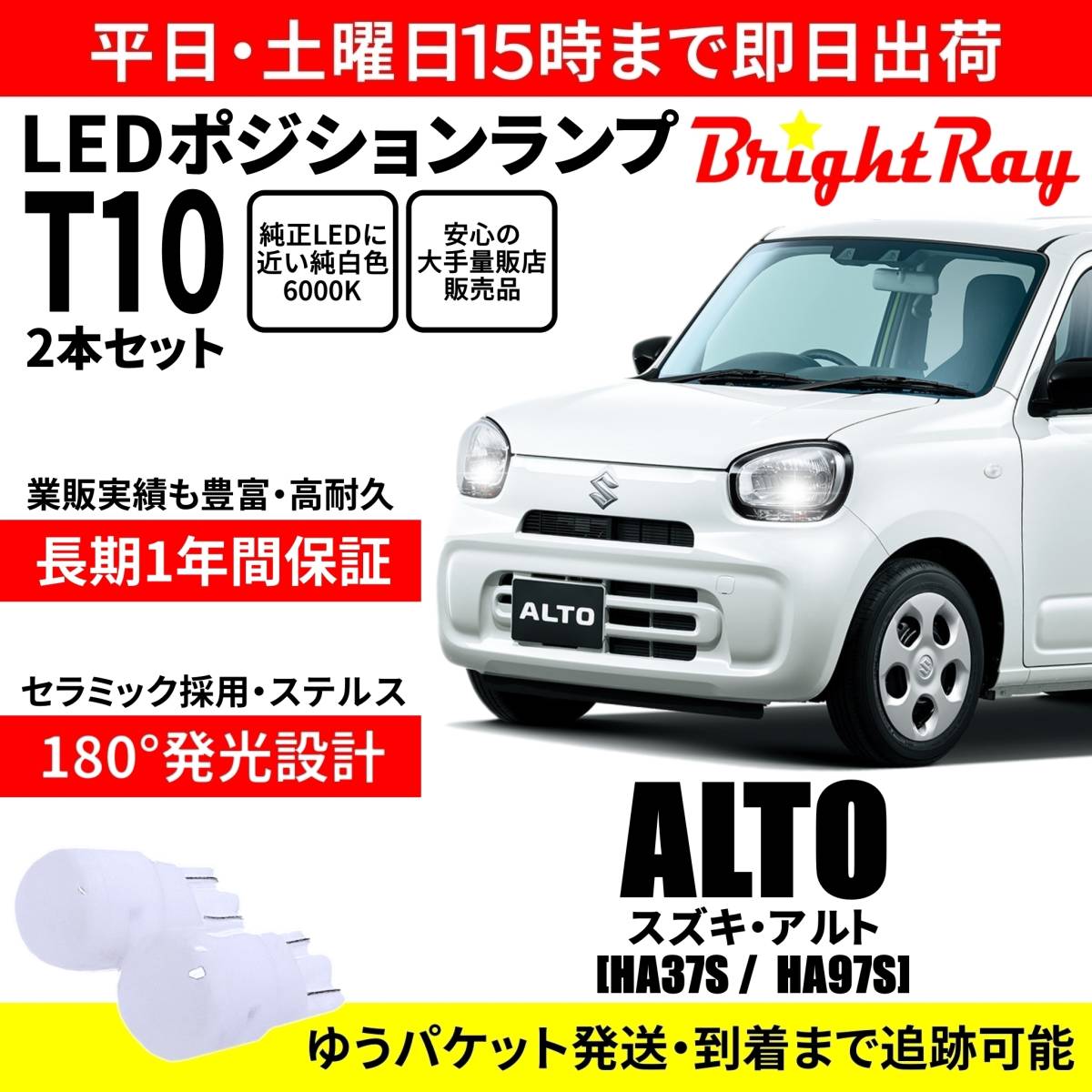 - 送料無料 1年保証 スズキ アルト HA37S HA97S BrightRay T10 LEDバルブ ポジションランプ 車幅灯 車検対応 2本セット ホワイト 6000K