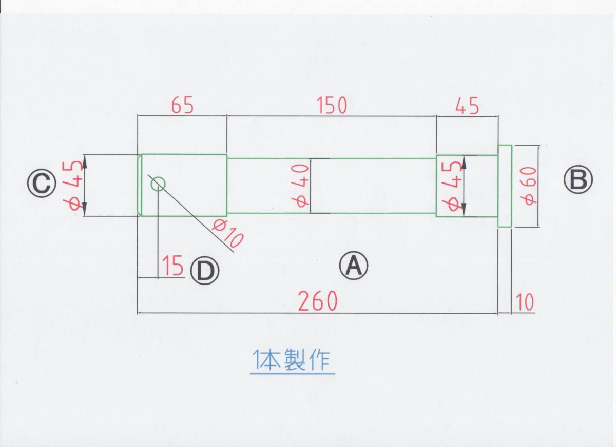 - NO 1596 Φ45用 全長260mm 中間φ40部分150mm 鍔付きバケットピン