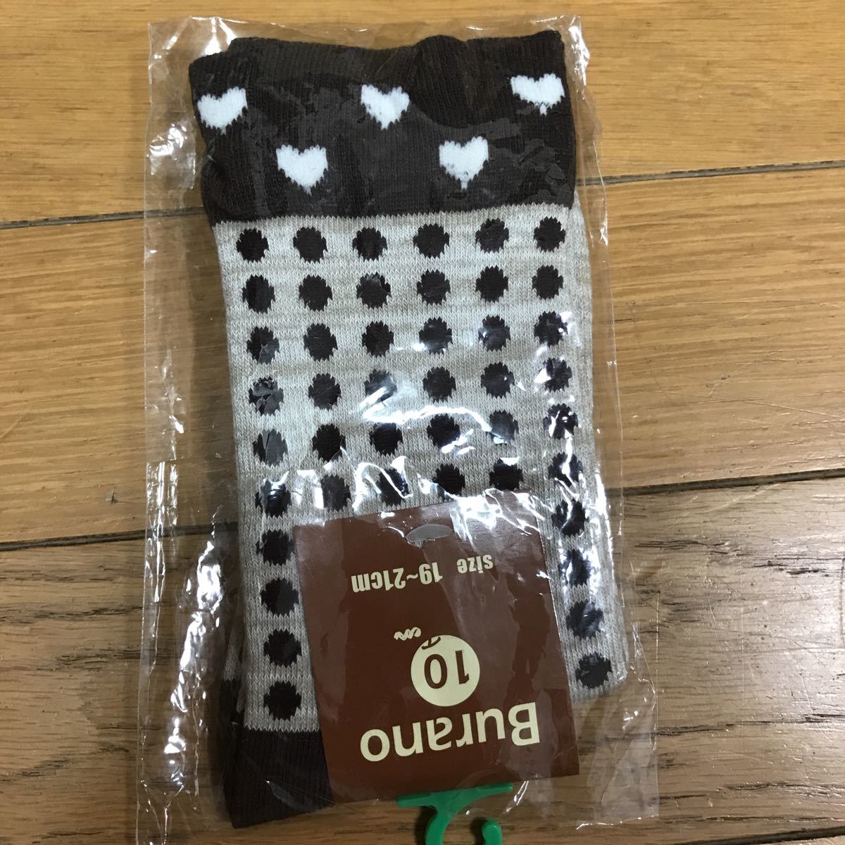 - 新品未使用 Burano 靴下 19~21cm 水玉茶色
