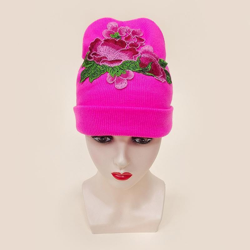 - 【ピンク】花 刺繍ニット キャップ レディース秋冬おしゃれ