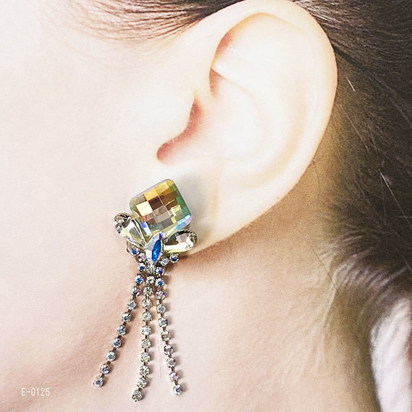 - 送料無料! ラインストーン 揺れる イヤリング 菱形 輝く キラキラ クリア ウェディング パーティー 発表会 社交ダンス