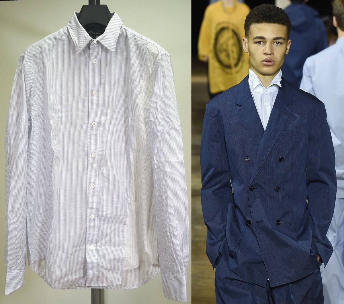 > 美品 3.1PhillipLim 3.1フィリップリム メンズ 16SSサイド切り替えワイヤー襟ストライプシャツXS白×青