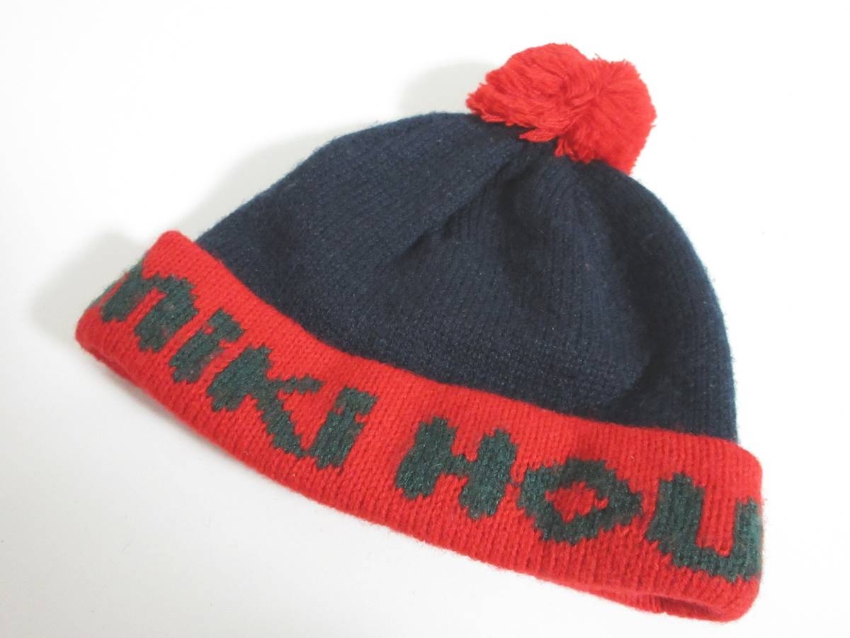 - ミキハウス MIKIHOUSE ポンポン付き ニットキャップ 帽子 紺 赤 irmri 亥3820