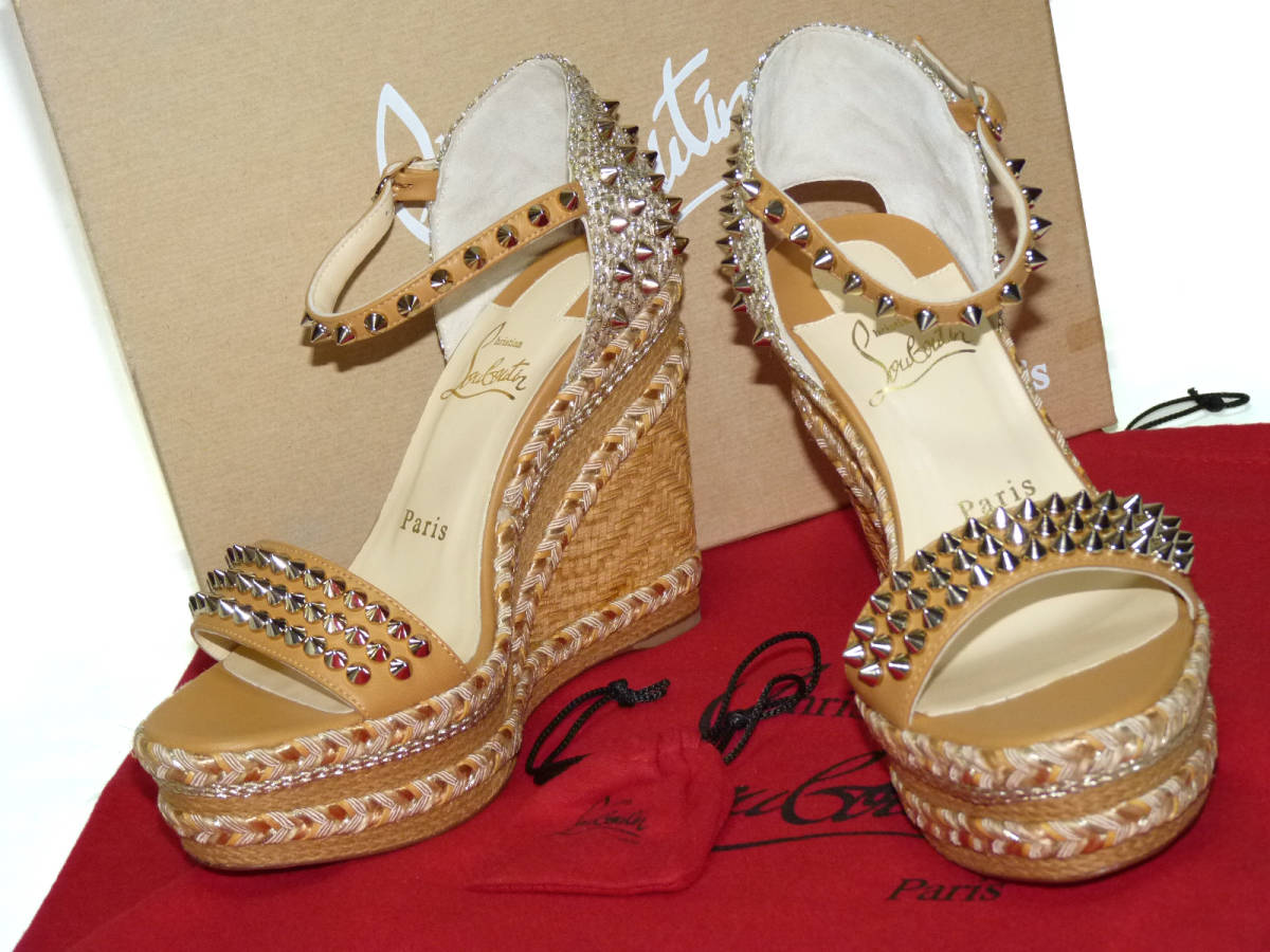 > 未使用 Christian Louboutin クリスチャン ルブタン MADMONICA 120 NAPPA スタッズ ウェッジ サンダル 36