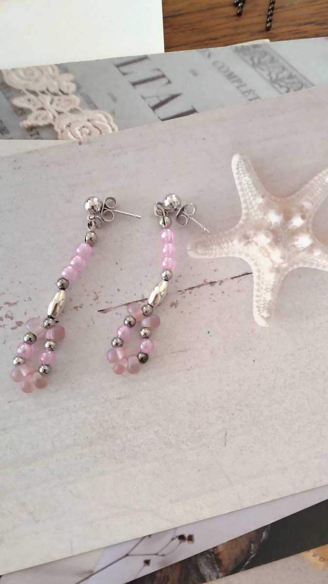 - ピンク×シルバーカラー・ビーズ 揺れるピアス