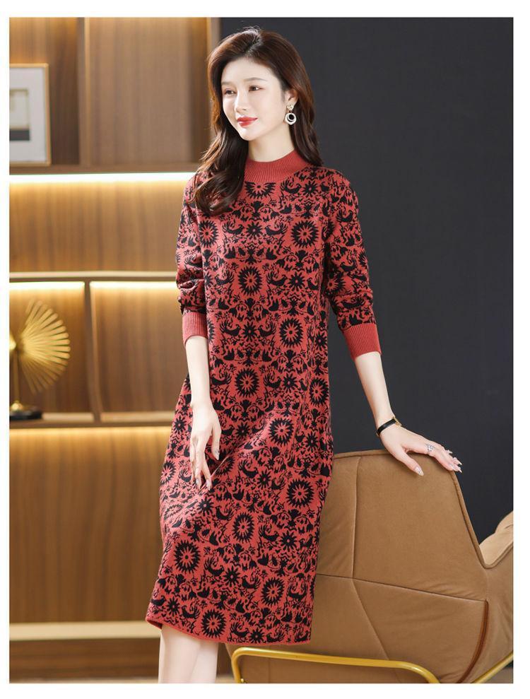 - 【オレンジ色★Lサイズ】長袖 ひざ丈 ニットワンピースおしゃれ