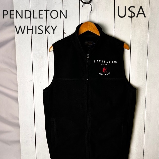 - USA古着 PENDLETON WHISY ジップスリースベスト 黒 M~L程度 オールド ペンドルトン ウイスキー アメリカ古着 オフィシャル コラボ ●75