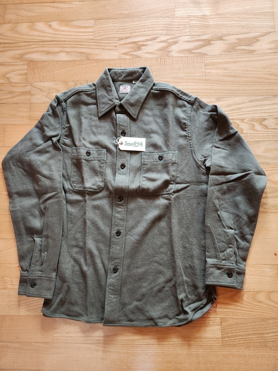 - SALE! 送料込★東洋 SUGARCANE シュガーケーン SC27696 TWILL WORK SHIRT 無地ワークシャツ 日本製 オリーブ M