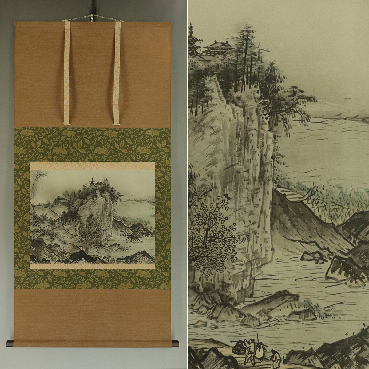 - 【巧芸】雪舟【四季山水 夏景図】◆紙本◆共箱◆掛軸 u10135b