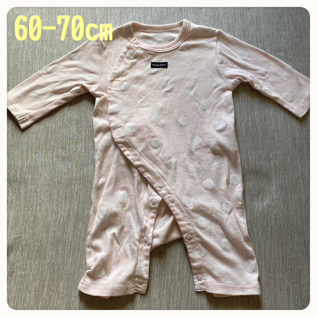 - ロンパース 長袖 ベビー ピンク 60 70 水玉 カバーオール 長ズボン