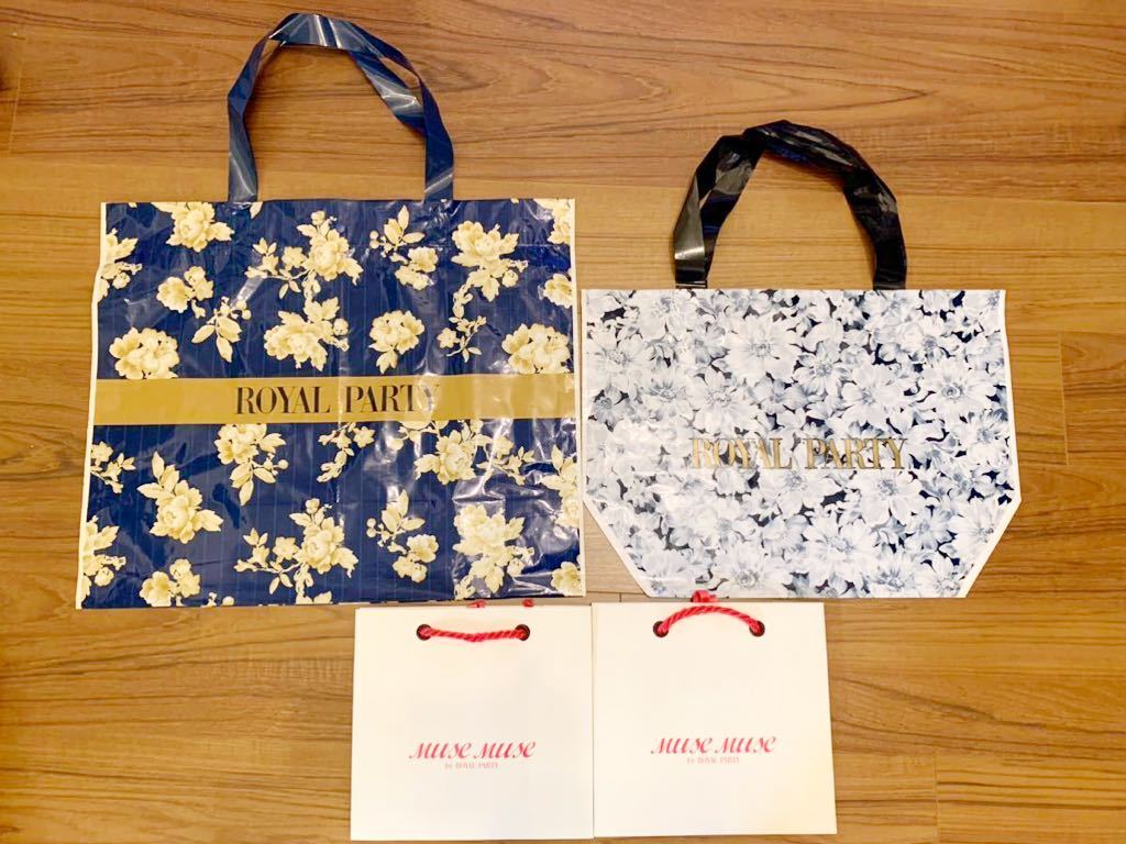 - ◆ROYAL PARTY & MuseMuse◆ロイヤルパーティー◆ショップ紙袋&プラスチック袋4枚セット◆ショッパー ショップ袋◆花柄プラスチックバッグ