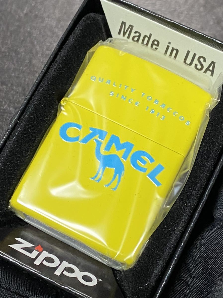 > zippo キャメル 両面加工 限定品 イエロー 希少モデル 2020年製 ☆ CAMEL QUALITY TOBACCOS ケース 保証書付き