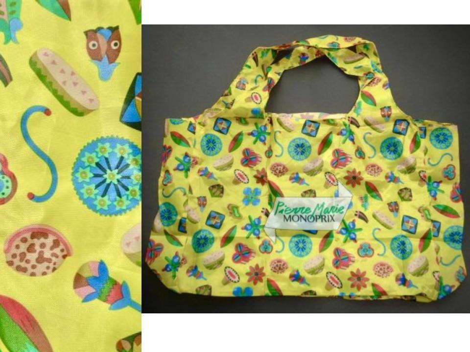 > ● 日本未発売 モノプリ エコバッグ コラボ Pierre Marie エルメスデザイナー どんぐり 花 お皿 イエロー 軽量折畳 携帯収納 ユニセックス