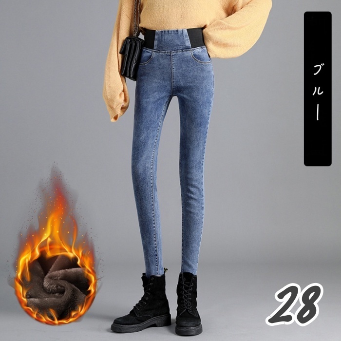 - 送料無料★新品 裏起毛 ストレッチ デニムパンツ 強力ストレッチ スリムパンツ ウエストゴム スキニー ロングパンツ ★ブルー/28