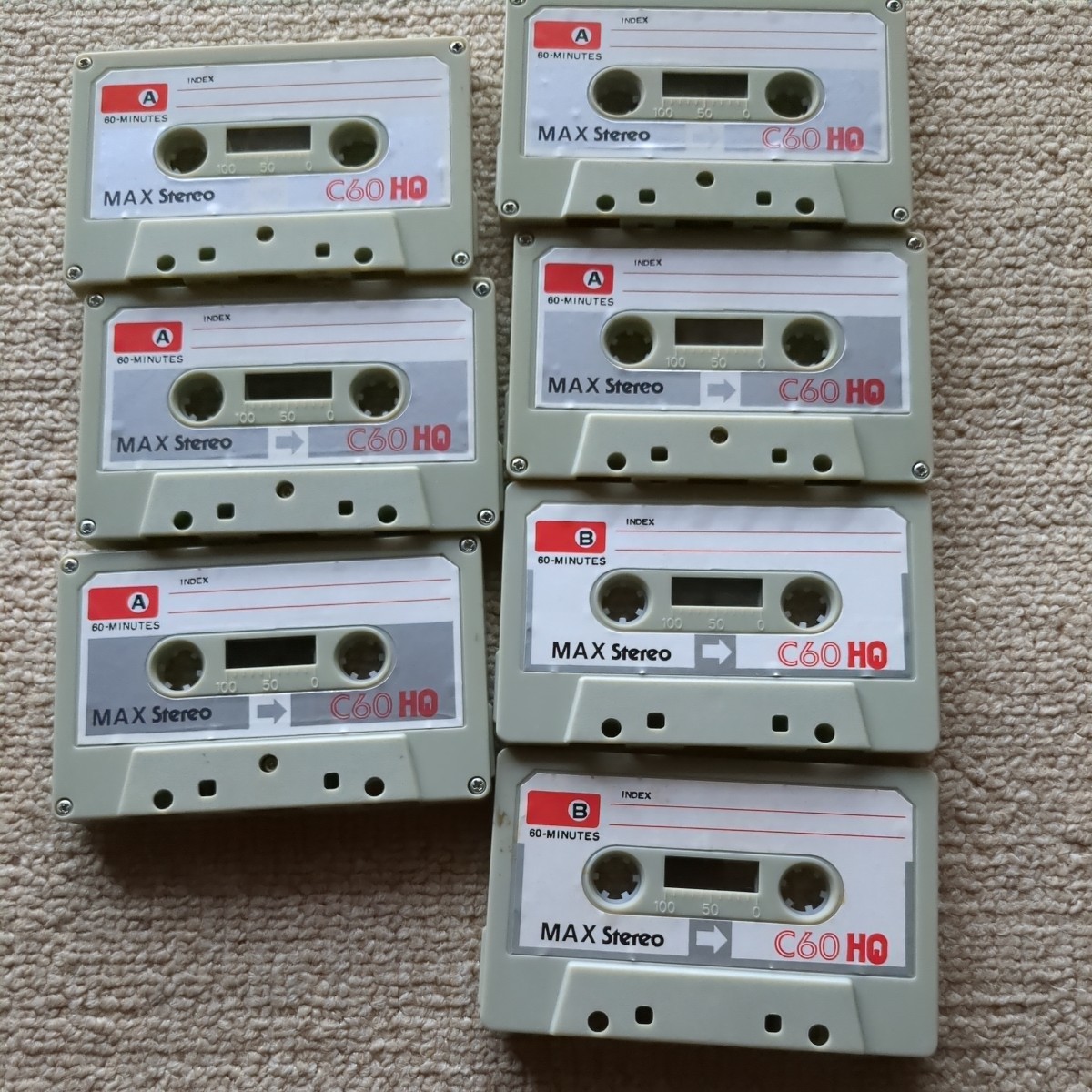 - ジャンク MAX C60 HQ 使用済み カセットテープ 計7本 当時物 昭和レトロ ノーマルポジション