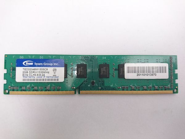 - 中古品★Team メモリ 2GB TED32048M1333C9 DDR3 1333 CL=9-9-9-24★2G×1枚 計2GB