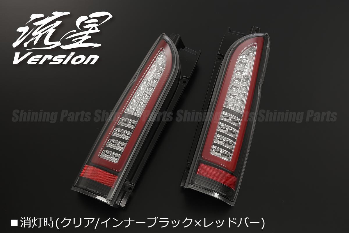 > [流れるウインカー] 200系 ハイエース オールLEDテールランプ [クリア/ブラック/レッドバー] 流星Ver. シーケンシャル 1/2/3/4/5/6 型 現行