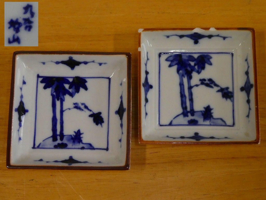- ●哲山 角皿 小皿 醤油皿 2枚 カケあり 時代物●