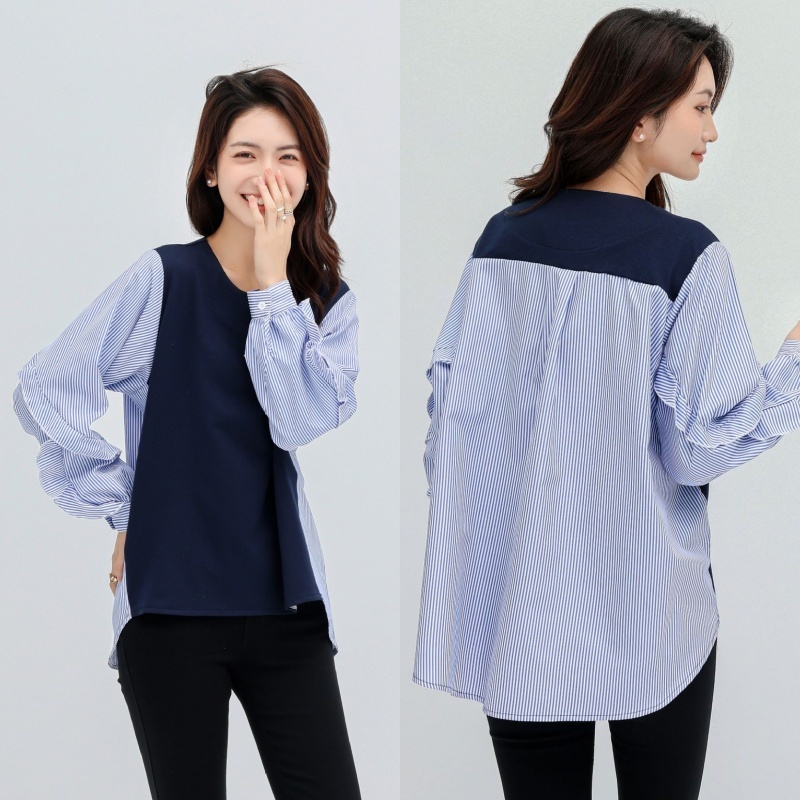 > 送料無料★新品 切り替え チュニック カットソー 長袖 ゆったり カットソー トップス レディース ナチュラル★ネイビー