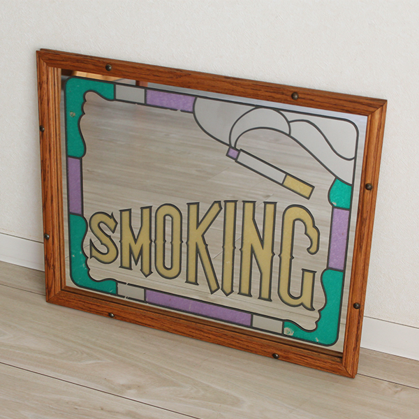 - アメリカ製ビンテージ ステンドガラス風 SMOKING サインミラー G052