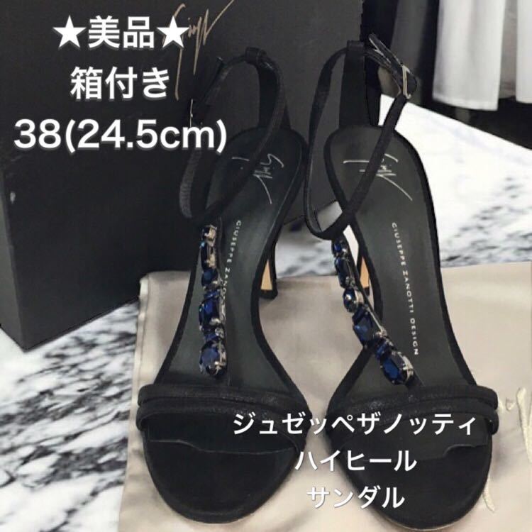 - 【箱付き】美品 ジュゼッペザノッティ サンダル ブラック ストーン 38 24.5 25 ヒール ストラップ ハイヒール