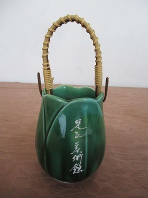 - ★花器? 持ち手つき 径6㎝ 高さ15.5㎝(持ち手入れて)※汚れキズあり tm2312-1-7★