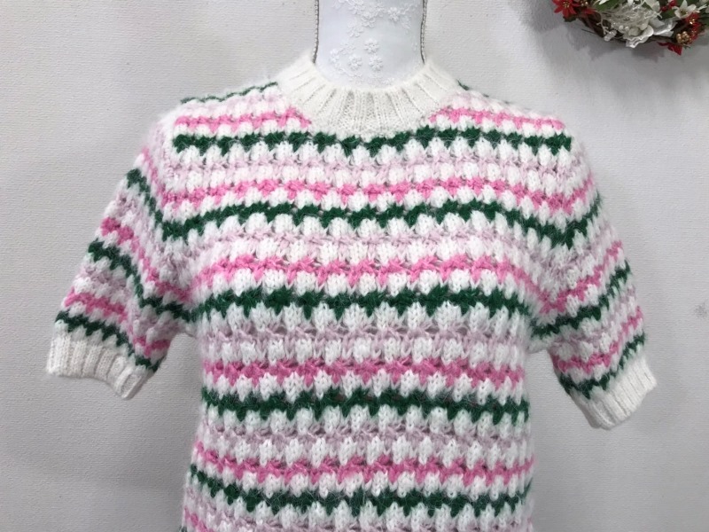 - 2029 ZARA 半袖ニットプルオーバー サイズ:M 色:白柄入り