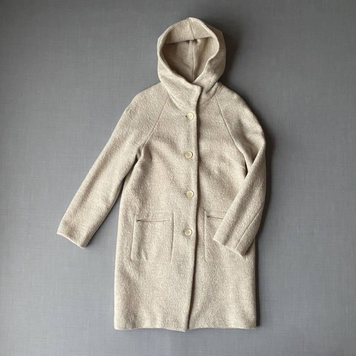 > bulle de savon フーデッドコート ウール アイボリー ピンクベージュ ホワイト ビュルデサボン 白系