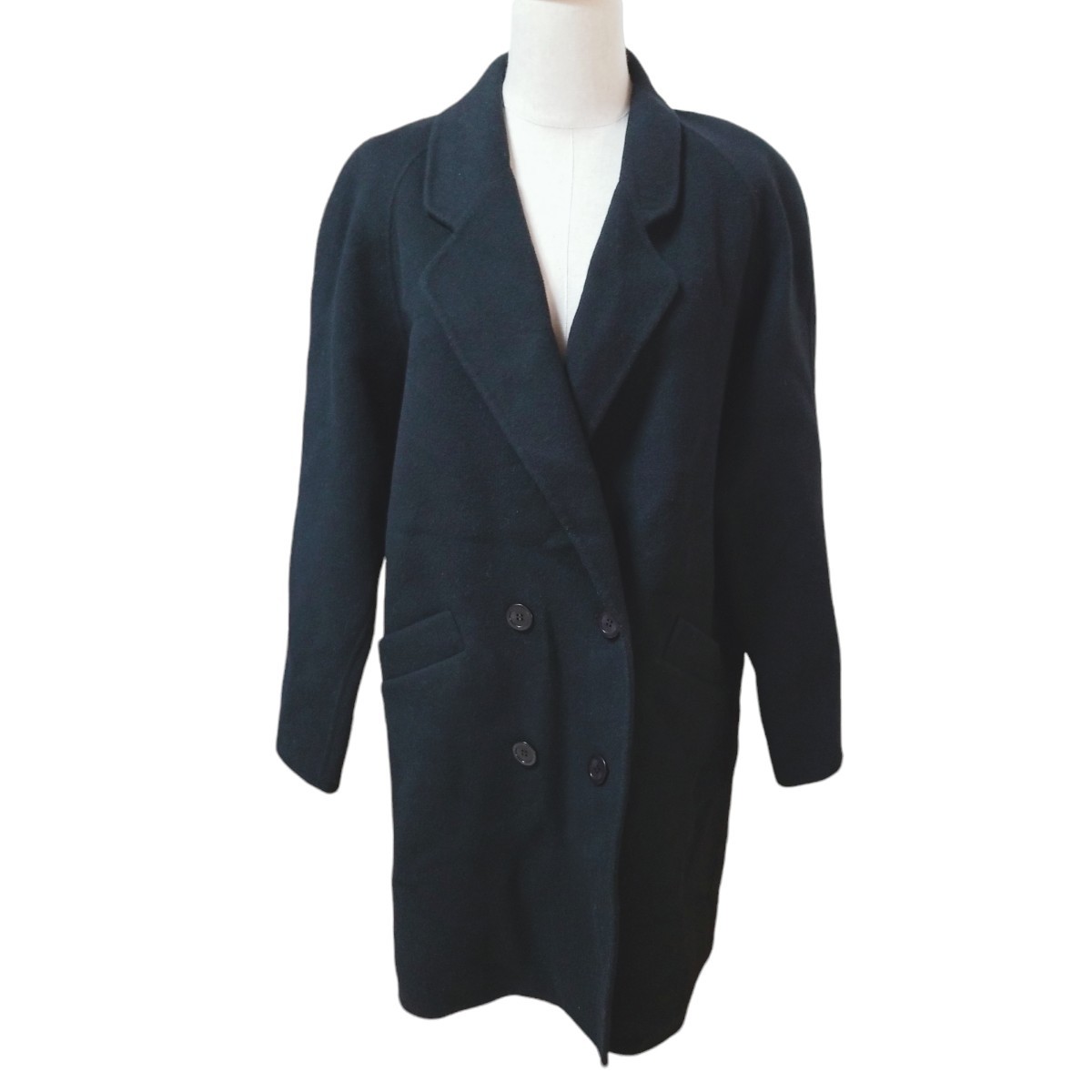 - Y1107 ウール・カシミヤ使用 ミドル丈コート チェスターコート アウター ダブル レディース フリーサイズ ブラック 黒