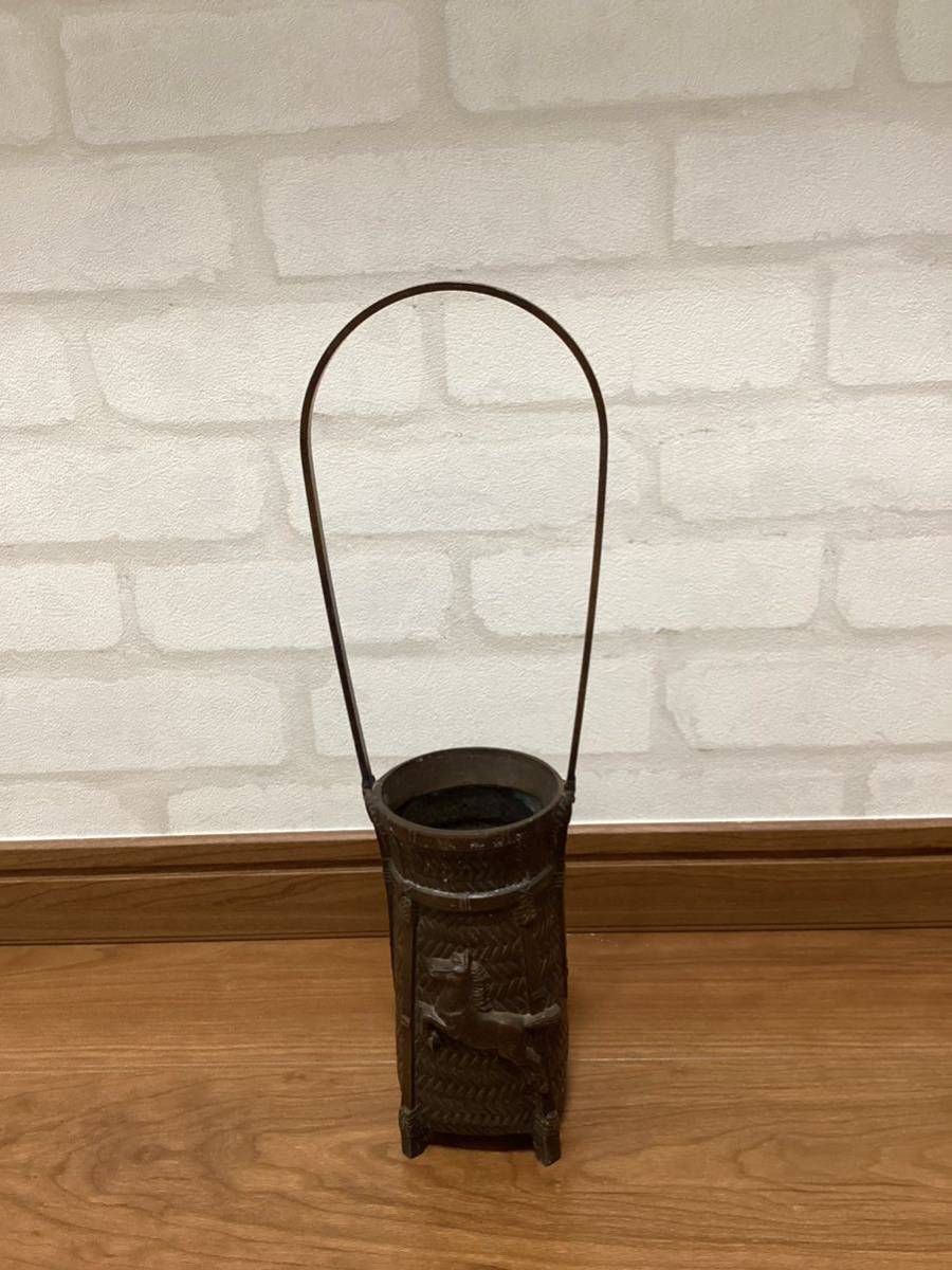 - 【中古品】高岡銅器 峰雲作 獸耳 銅器 置物 陶器鉢