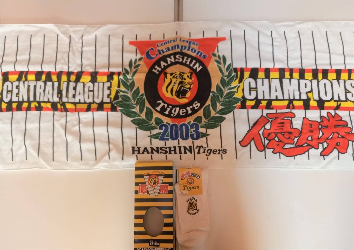 > 阪神 日本一 38年ぶり チャンピオン 新品 未使用 阪神タイガース 承認 2003年 優勝記念 フェイスタオル 靴下 セット