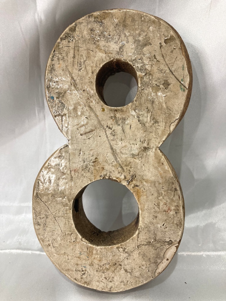 - 【レトロ調 インテリア オブジェ ナンバー】木製切り文字 木製数字 8 (18㎝サイズ/白系)1点/カフェ/インテリア/デッドストック/Jz6_YP