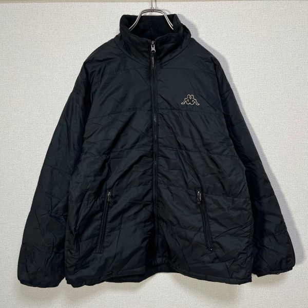 - カッパ アウター 中綿ジャケット 黒 刺繍 ワンポイント ブラック16 古着 入手困難 激レア希少人気 kappa ブルゾン シンプル激安